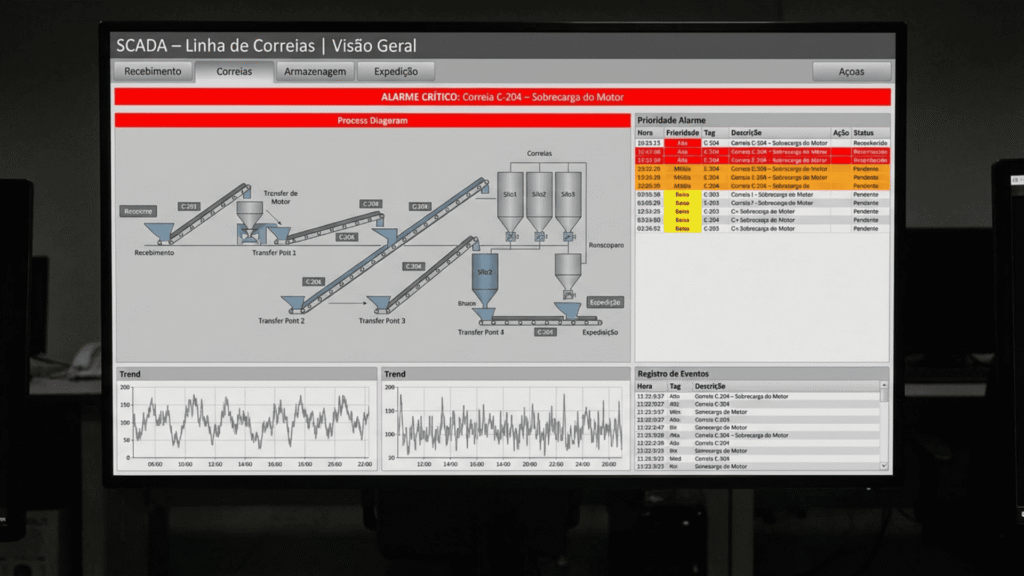 Nossa especialidade é o desenvolvimento e modernização de SCADA/HMI com WinCC Unified e Elipse E3. O Elipse E3 é uma das plataformas mais robustas e difundidas na indústria brasileira, e é onde temos grande profundidade técnica, do padrão de telas e alarmes até relatórios e integrações.